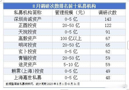 值得一提的是,在8月调研次数排名前十的私募中无纯量化私募,以“主动型”管理为主。
